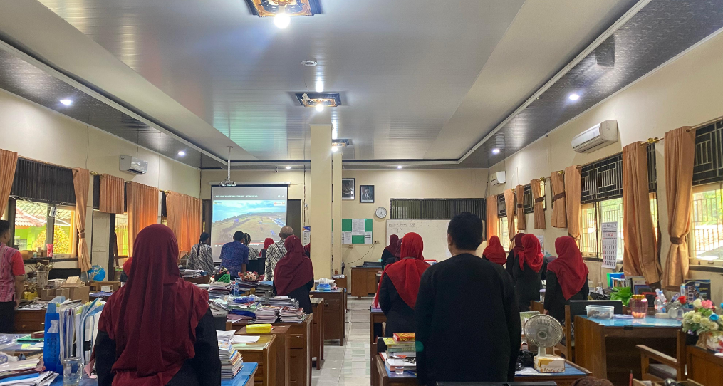 Upacara dilaksanakan secara daring di ruang guru SMA Negeri 2 Batang